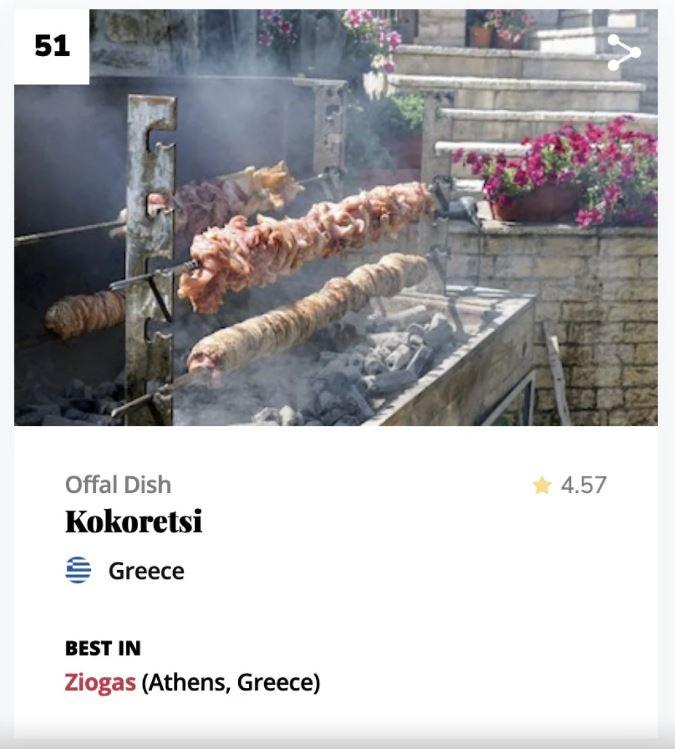 Yaptığı en iyi mutfaklar sıralaması ile tartışma yaratan Taste Atlas, kokoreçi, kokoretsi adı ile Yunanistan mutfağına dahil etti.